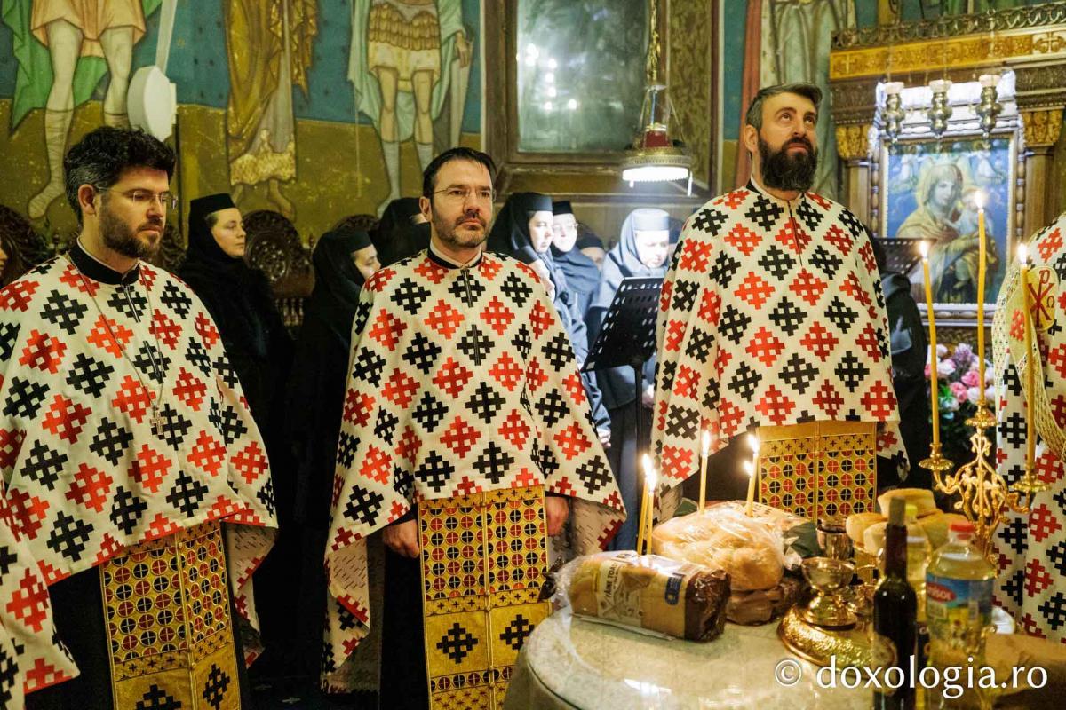 Sfânta Liturghie a fost săvârșită de Înaltpreasfinţitul Părinte Teofan, Mitropolitul Moldovei și Bucovinei, înconjurat de un sobor de preoți și diaconi.